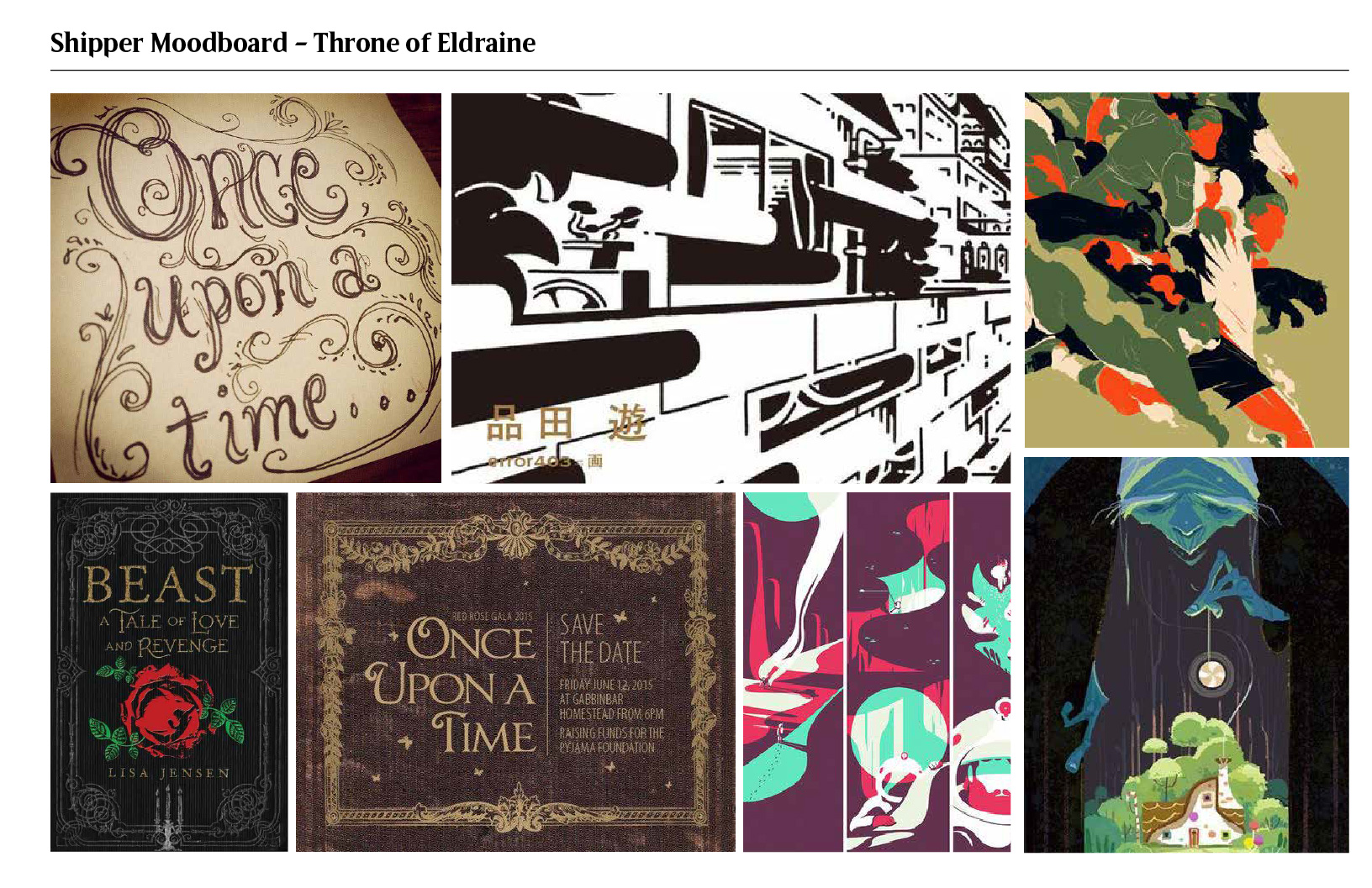 The theme is best summarized by “Fairy tales with Magic’s twist.” Art from a variety of cards was taken and collaged together to create a single piece that would hint at the variety of stories that are featured within the card set. This was then applied to the box along with an insert that was designed to mimic the visual language of classic fairy tale storybooks.