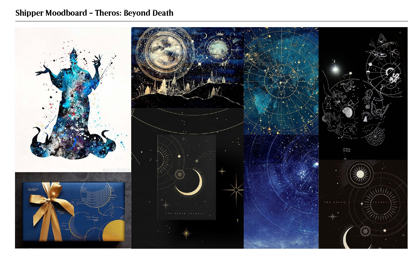 Theros is a Magic setting based on Greek mythology. This particular set was focused around the underworld of the setting along with a hero escaping from it. Many of the concepts for this particular set focused on astrology and Greek art, such as that found on pottery or iconic wall paintings. With the astrology concept winning out for the box, other concepts were revisited and used in the designs for consumer products.